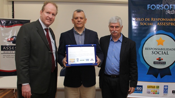 Durante a homenagem, a ASSESPRO-RJ lançou seu selo de Responsabilidade Social, que foi concedido às 39 empresas que apoiaram o Forsoft-Rio desde a sua 1ª edição, em 2010. A Go2web orgulha-se de fazer parte deste time.